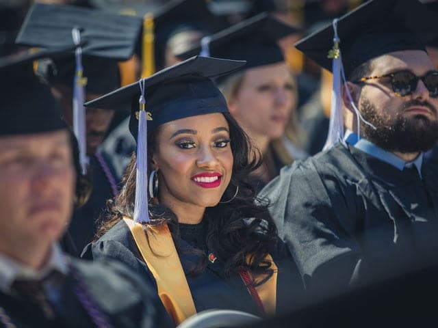 Commissioning is a formal ceremony shared with peers, faculty, and distinguished guests where graduates’ names are read aloud as they walk across the stage in recognition of their accomplishments. A hooding ceremony will accompany the moment of graduates who have earned master’s or doctoral degrees.
