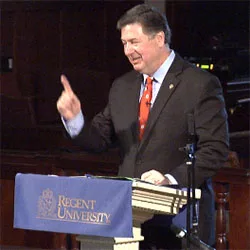 “We embrace people from across the political spectrum,” said Patterson. “Governor Allen is a very special person when it comes to Regent University. For instance, one of our distinguished professors, Judge Patricia West, was an appointment in his administration. She then went on to be judge here in the state.”
