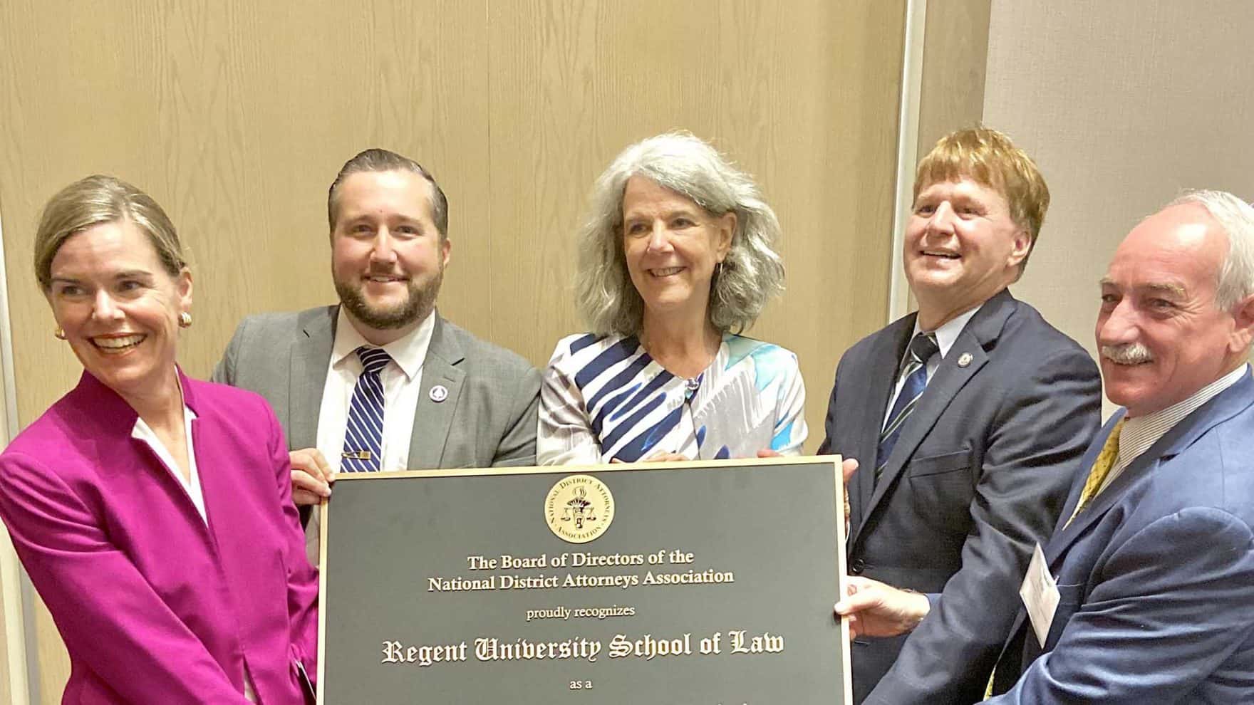 VIRGINIA BEACH, VA (July 19, 2021) – Regent University School of Law is pleased to announce its designation as a Regional Advocacy Training Center for the National District Attorneys Association (NDAA). Prosecutors throughout the region will now have access to Regent Law’s premier facilities and resources through customized NDAA training courses in Virginia Beach, VA. This prestigious designation was unveiled to Regent Law Dean Mark Martin by the NDAA Board of Directors during the association’s Summer Summit, taking place July 18-20, 2021, in Virginia Beach.