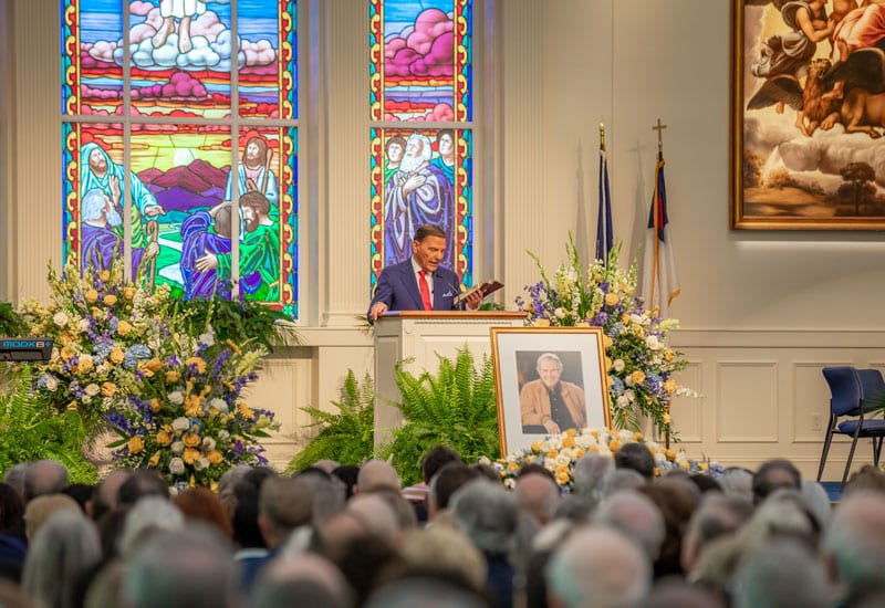 After sharing an insightful video that chronicled the impactful life of this great pioneer and patriarch, eldest son, Tim Robertson, treated the congregation to inside information, like his father’s love of the long running television programs Bonanza and Gunsmoke. But it was his dad’s life of obedience and faith that equipped him to lead their family and change the world.