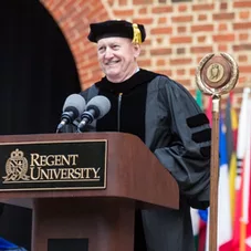 Dr. Gerson Moreno-Riano, Regent’s executive vice president of academic affairs, recognized outstanding graduates from each of Regent’s eight schools, and Robertson pronounced his charge to graduates.