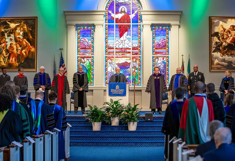 Those assembled uttered a unified “Amen” as members of the Regent University Board of Trustees, elected officials, community partners, faculty, staff, and a myriad of dignitaries, all took their seats.