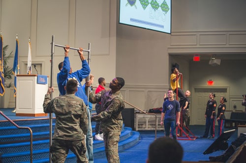 More than 350 prospective students from seven high schools in the area turned out to participate in activities, which included a military trivia and pull-up challenge, and learn about Regent’s two new Military Science courses.