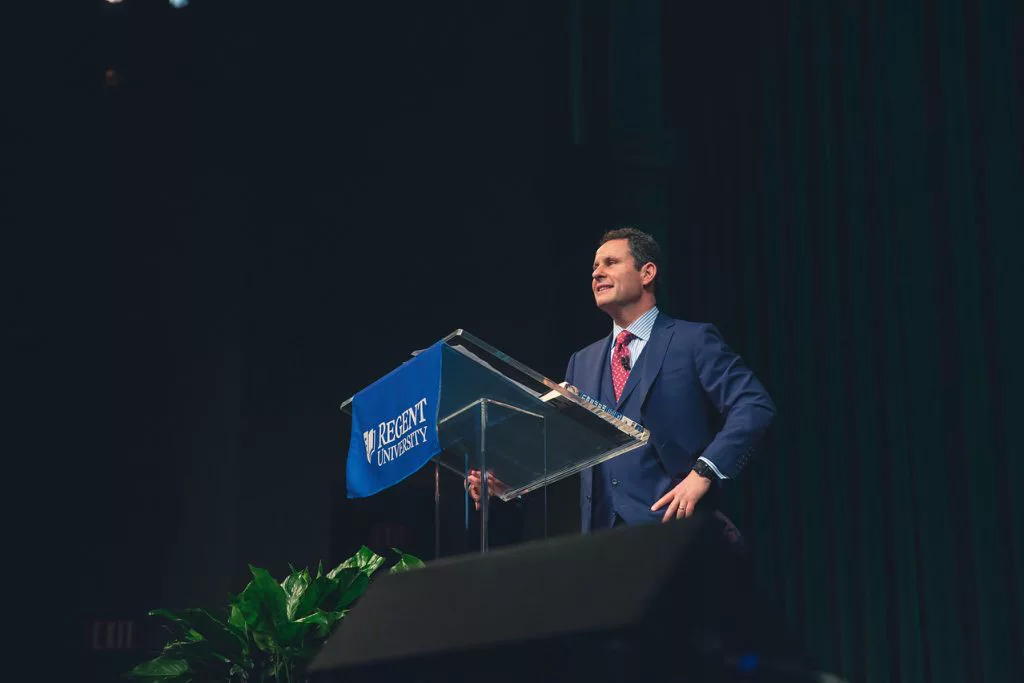 “I’m lucky now, but I want to tell you the journey I’ve been through,” Kilmeade told the Regent University’s Executive Leadership Series audience on Friday, January 26. “I feel lucky every single day. I don’t even consider what I do work.”