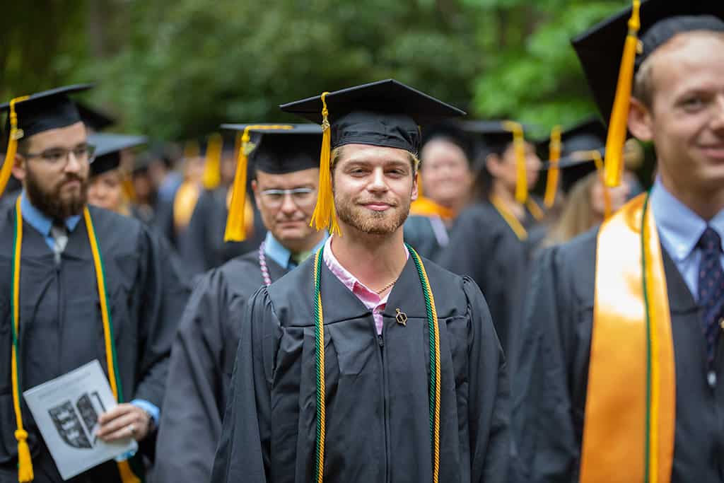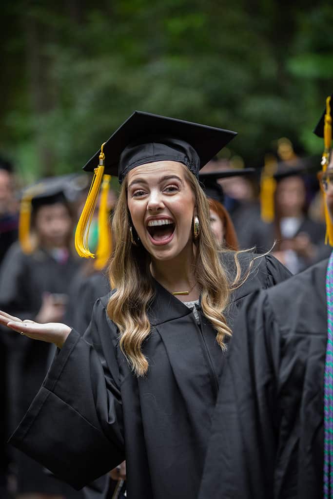 He urged graduates to tap into that care by contemplating three powerful words: Silence, Beauty, and Improvisation. Silence to transition the mind, restore the voice and strengthen the entrance; beauty through truth, love, grace and forgiveness that breathe life into the soul; and improvisation to turn their tassels and then go “off script,” ready to say, “yes, and” to the unexpected, because of their confident partnership with God.