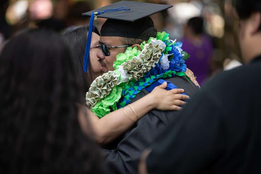 A 32-year-old bachelor’s in management grad high-fives his young son: “You’re next, buddy!” Reflecting on his “juggle” as a full-time worker-husband-father, plus student, he confirms: “It’s all been worth it to get to this day, this example for my family.”