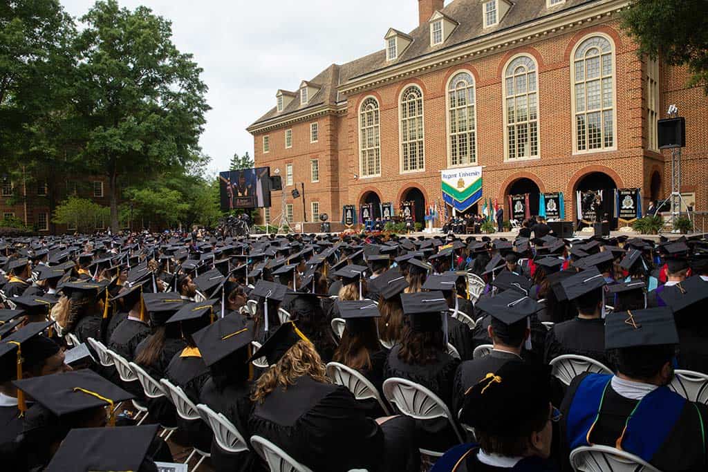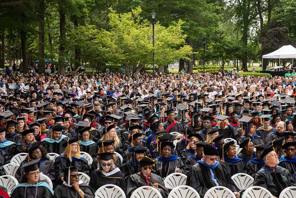 Regent’s 39th Commencement, held on Saturday, May 11, 2019, conferred nearly 2,000 undergraduate and graduate degrees – the largest in the university’s history – on its campus in Virginia Beach, Virginia. Faces bright, in spite of overcast skies, graduates proudly took their place on the university’s Library Plaza to enjoy their well-earned moment of honor.