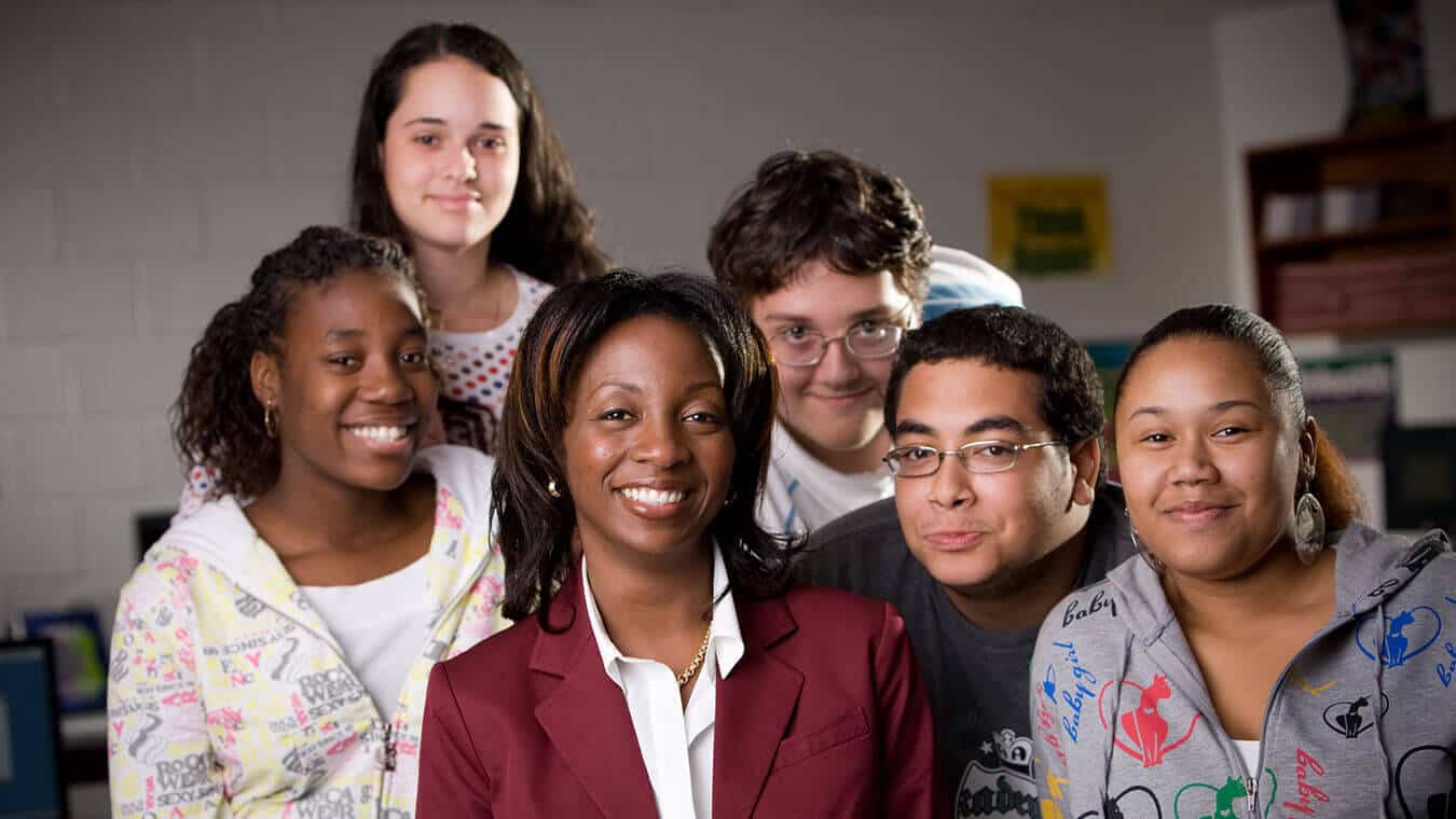 A teacher with students: Pursue an EdS degree in educational leadership online at Regent University.
