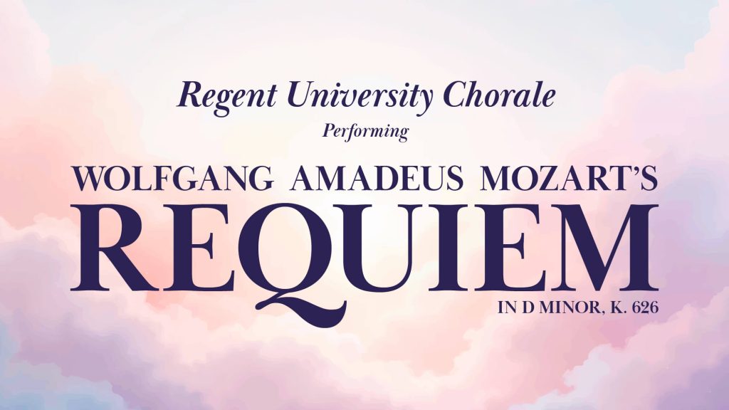 As we prepare our hearts for Holy Week, let us come together in the presence of the Holy Spirit with the sacred masterpiece of Mozart’s unfinished work, Requiem in d minor K. 626, performed by Regent University Chorale, a chamber orchestra, and professional soloists.