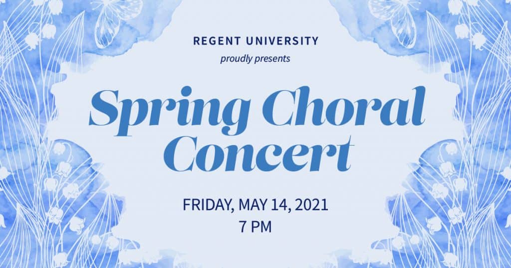 Join us as we lift our hearts and voices in musical worship during the Regent University’s Spring Choral Concert. You will experience both blessings and rejoicing through sacred music from various genres written by Bach, Brahms, Burleigh, Gjeilo, Paulus, Runestad, Wickham & Johnson, and more. This musical celebration, featuring the Regent University Chapel and Chamber Choir.